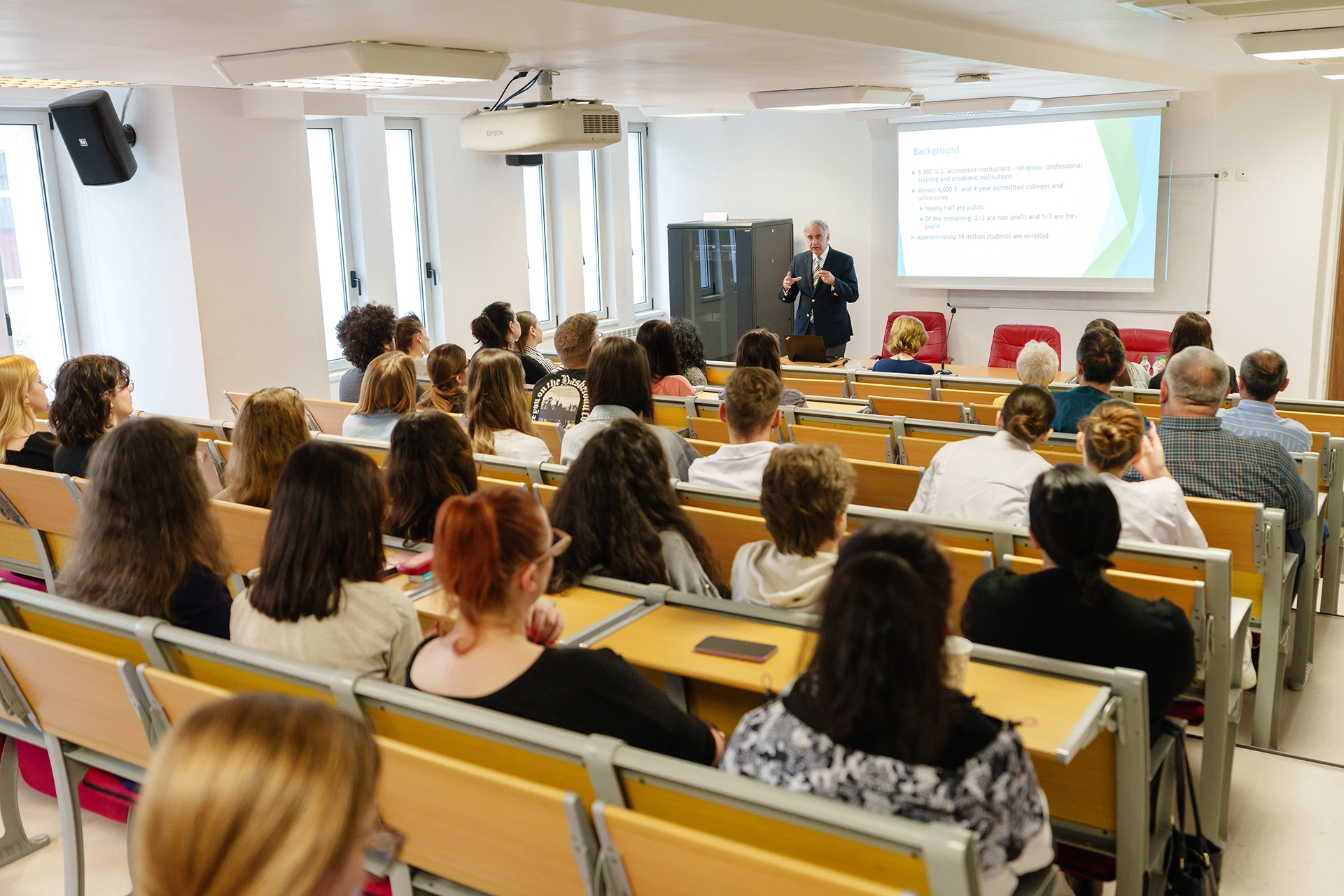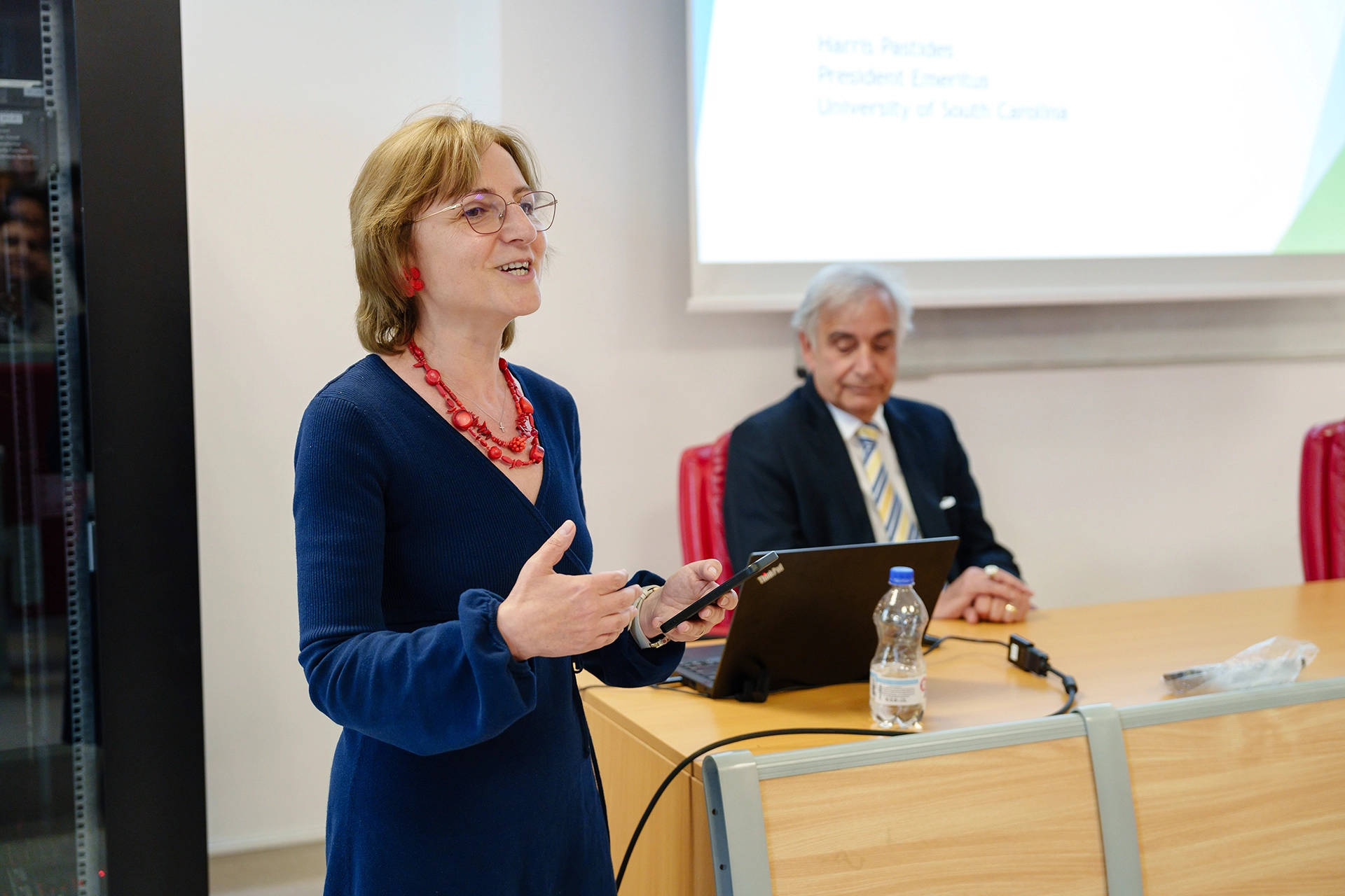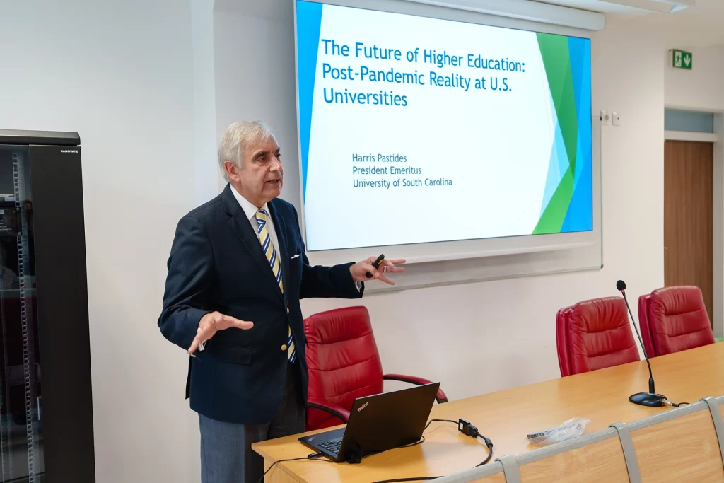 Organizată de Institutul de Cercetare al Universității din București, vizita a inclus o întâlnire a profesorului Harris Pastides cu Rectorul Universității din București, profesorul Marian Preda, și Prorectorul pentru Cercetare al UB, profesoara Carmen Chifiriuc, precum și conferința “The Future of Higher Education: Post-Pandemic Reality at U.S. Universities”.