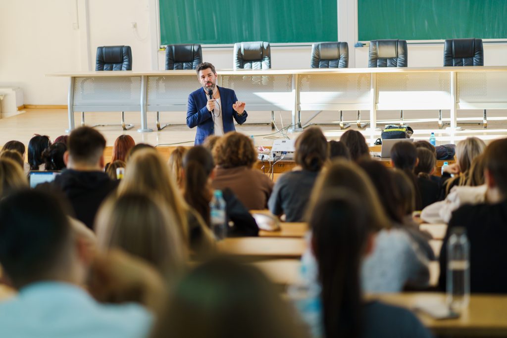 Evenimentul s-a încheiat cu o sesiune de întrebări pe care studenții le-au adresat invitatului.