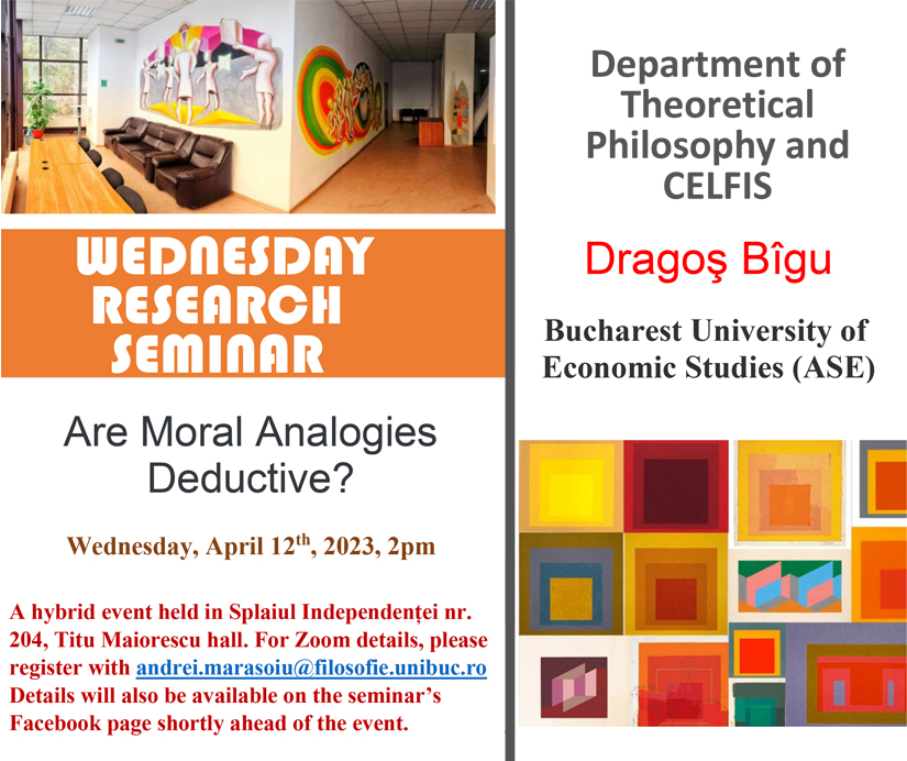 Joi, 4 mai 2023, a avut loc o nouă ediție a seminarului de cercetare al Departamentului de Filosofie Teoretică, organizat în parteneriat cu Centrul de Cercetări în Logica, Filosofia și Istoria Științei (CELFIS) din cadrul Universității din București.