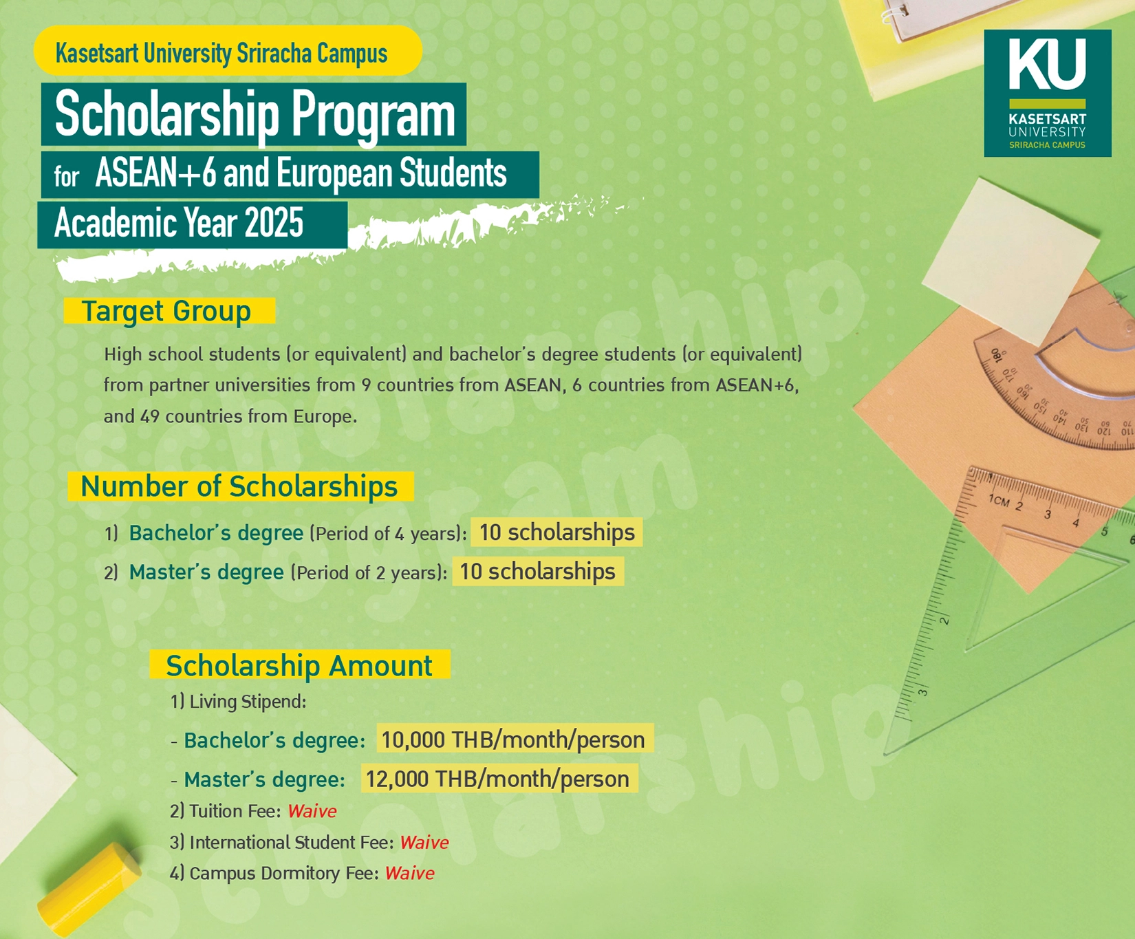 De asemenea, mai pot aplica studenții din țările membre ale Asociației națiunilor din sud-estul Asiei (ASEAN), dar și cei din ASEAN+6.
