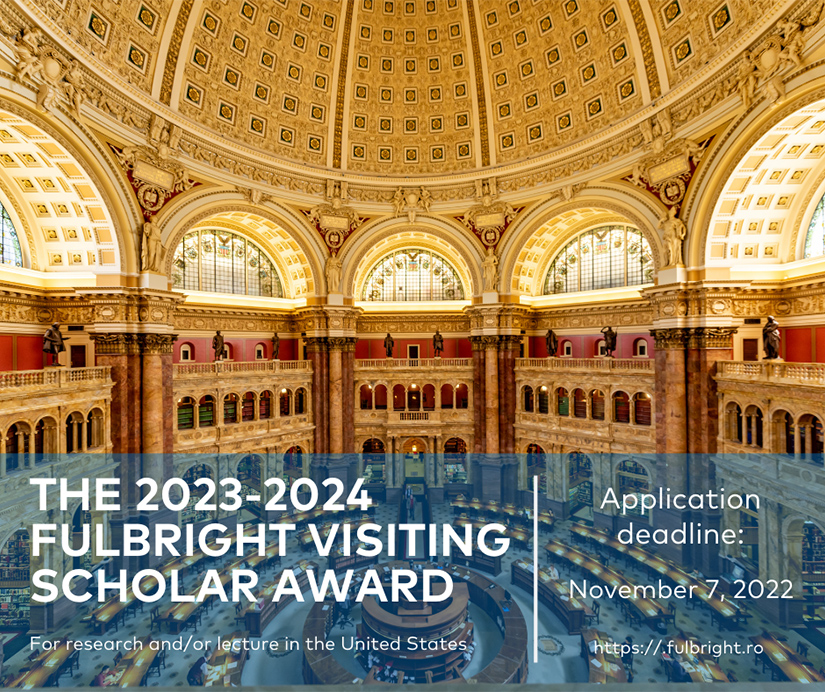 Comisia Româno-Americană Fulbright a deschis competiția de burse Fulbright Visiting Scholar pentru anul academic 2023-2024. Candidaturile pot fi depuse online până la 7 noiembrie 2022. Bursele se adresează cadrelor didactice și cercetătorilor din universități, centre și institute de cercetare care intenționează să predea sau să realizeze studii și cercetări în mediul academic american.