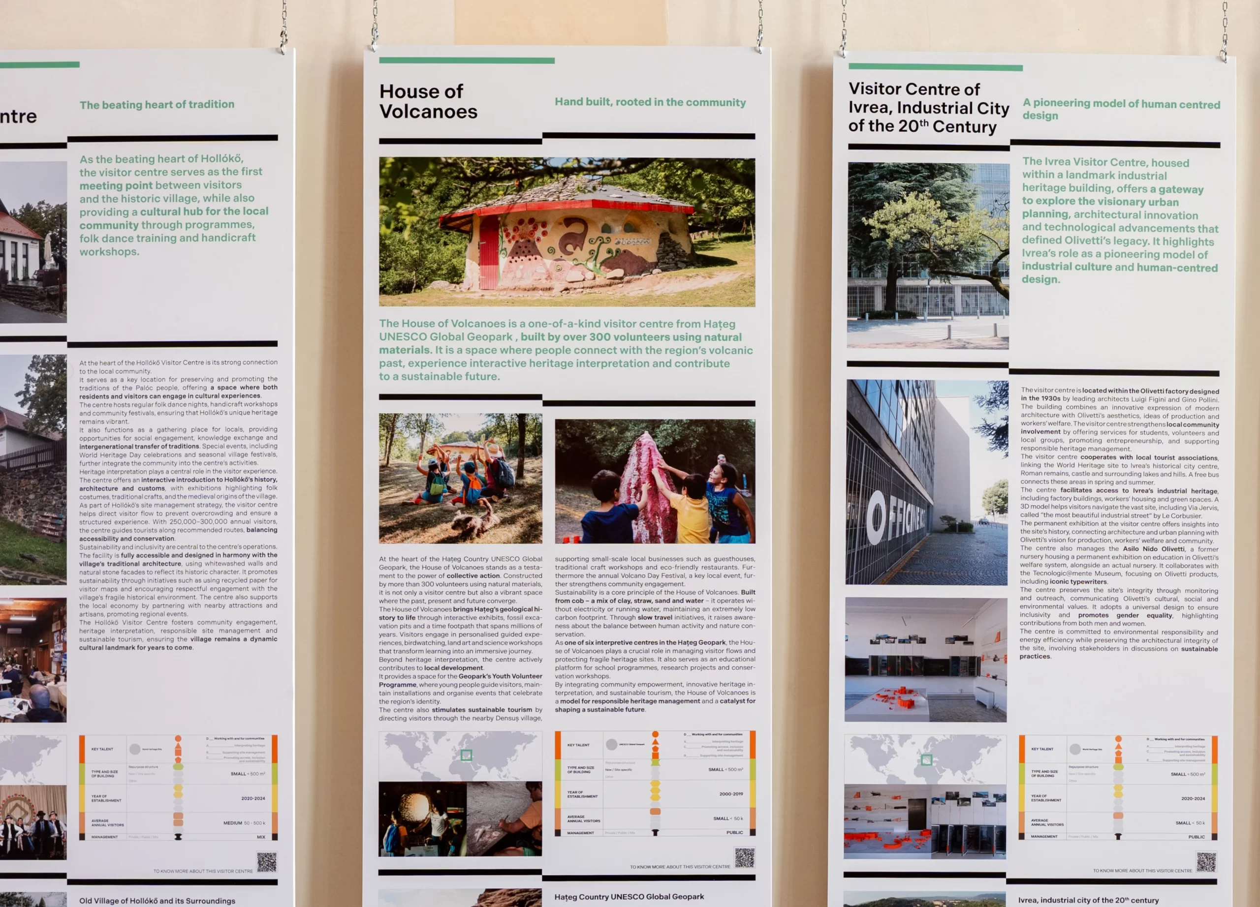 Casa Vulcanilor participă la expoziția internațională Deep Surfaces: Architecture to Enhance the Visitor Experience at UNESCO Sites, organizată de Biroul Regional UNESCO pentru Știință și Cultură în Europa. Centrul de interpretare este coordonat de Asociația Drag de Hațeg și face parte din infrastructura de vizitare a Geoparcului Internațional UNESCO Țara Hațegului administrat de Universitatea din București. Este un obiectiv de vizitare recunoscut pentru felul în care îmbină patrimoniul geologic, sustenabilitatea și implicarea comunității.