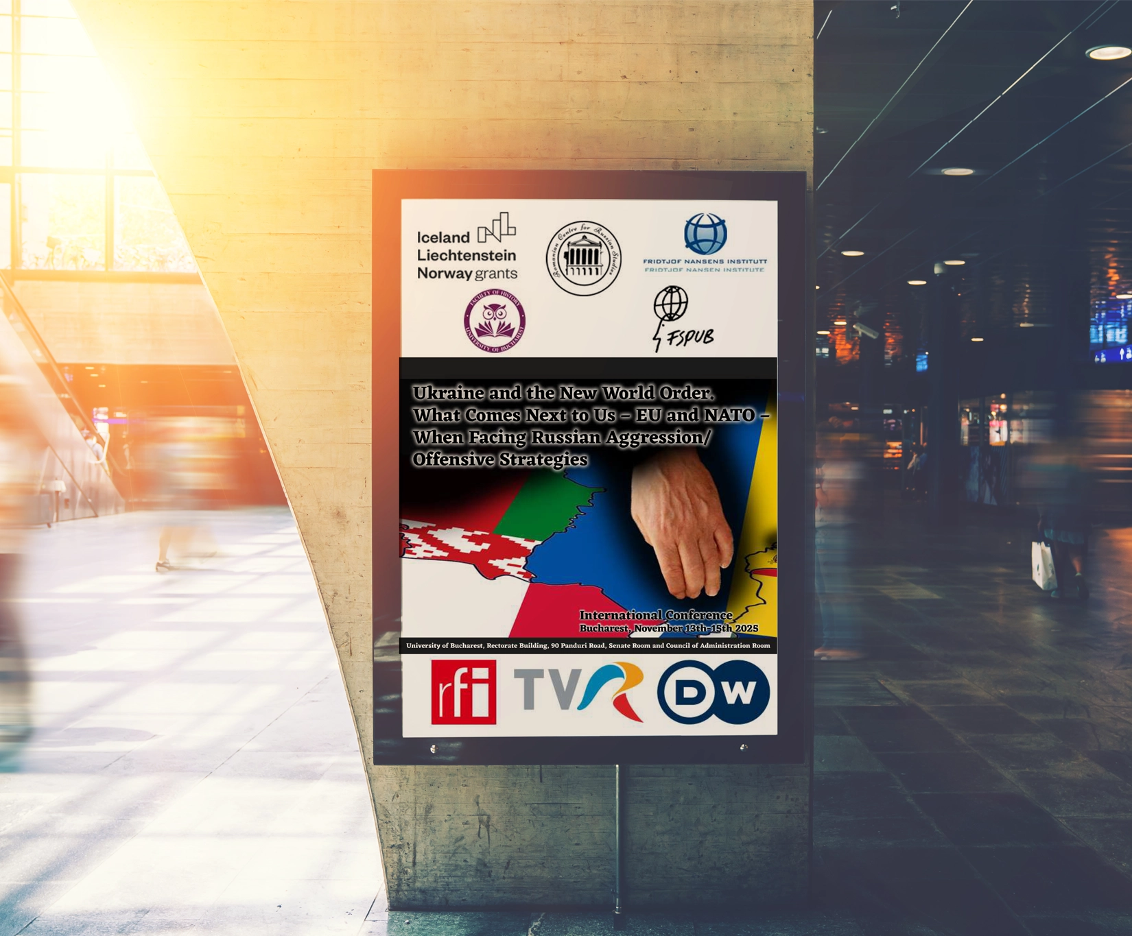 În perioada 13-15 noiembrie 2025, Centrul Român de Studii Ruse al Universității din București organizează, în parteneriat cu Fridtjof Nansen Institute din Oslo, cea de-a patra conferință anuală internațională, intitulată „Ukraine and the New World Order. What Comes Next to Us – EU and NATO – When Facing Russian Aggression/Offensive Strategies”.