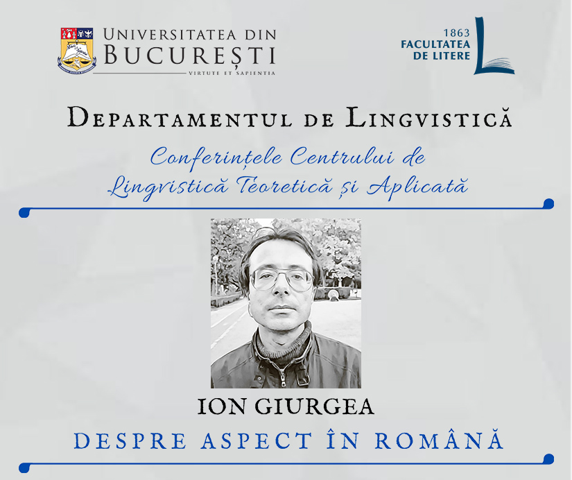 Joi, 7 aprilie 2022, Departamentul de Lingvistică al Facultății de Litere continuă ciclul Conferințelor Centrului de Lingvistică Teoretică și Aplicată cu prezentarea „Despre aspect în română”, susținută de cercetătorul Ion Giurgea.