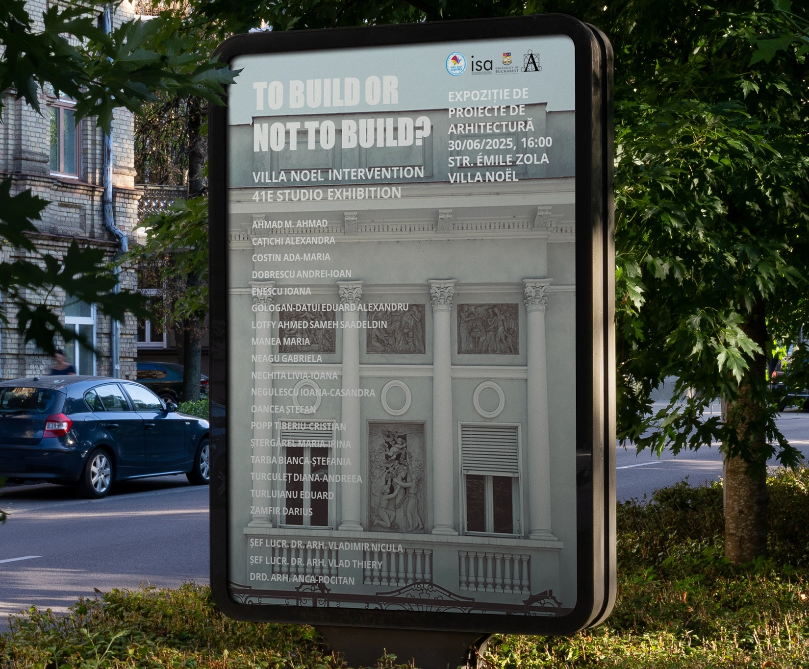 Expoziția va reuni proiectele studenților din anul IV de la Facultatea de Arhitectură a Universității de Arhitectură și Urbanism „Ion Mincu” din București, realizate sub coordonarea domnului dr. arh. Vladimir Nicula, în cadrul atelierului intitulat To Build or Not to Build? Villa Noël Intervention – 41E Studio Exhibition.