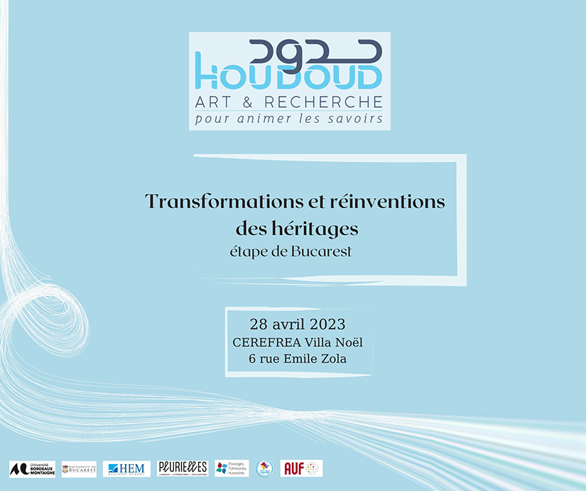 Vineri, 28 aprilie 2023, Universitatea Bordeaux Montaigne în parteneriat cu Centrul Regional Francofon de Studii Avansate în științe sociale – CEREFREA Villa Noël al Universității din București și Institutul de Înalte Studii de Management din Rabat, cu sprijinul financiar al Agenției Universitare a Francofoniei, organizează colocviul de închidere a proiectului Houdoud 2/Frontières – La fertilisation des savoirs à l’université par la rencontre entre l’art et la recherche: pour une meilleure inclusivité citoyenne.