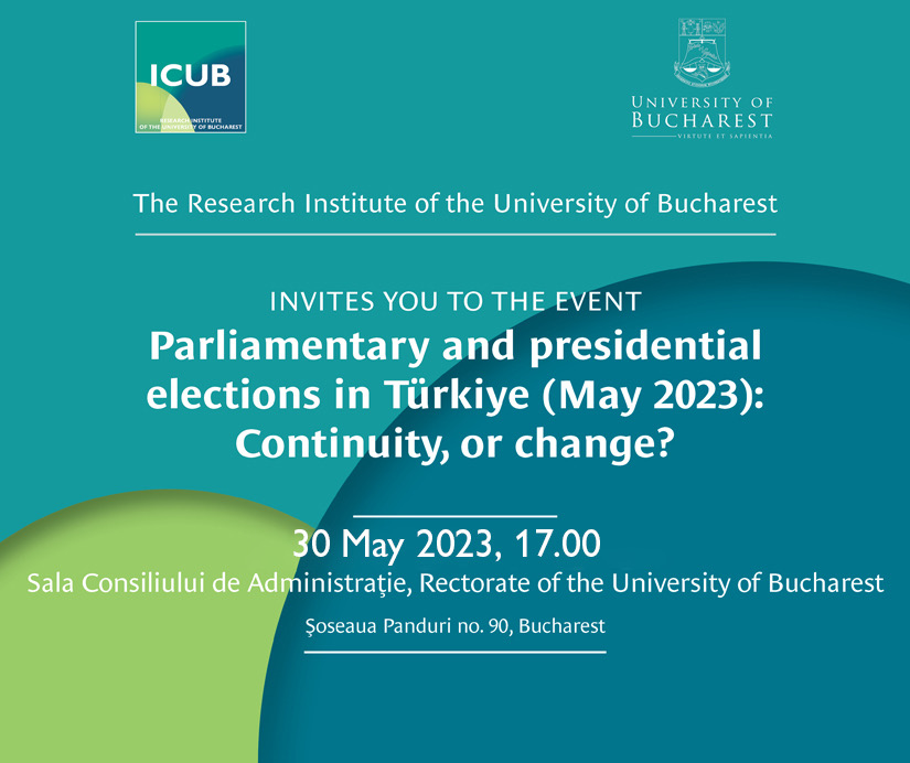 Marți, 30 mai 2023, începând cu ora 17:00, Institutul de Cercetare al Universității din București (ICUB) organizează conferința cu titlul Alegerile parlamentare și prezidențiale din Turcia (mai 2023) – Continuitate sau schimbare?.