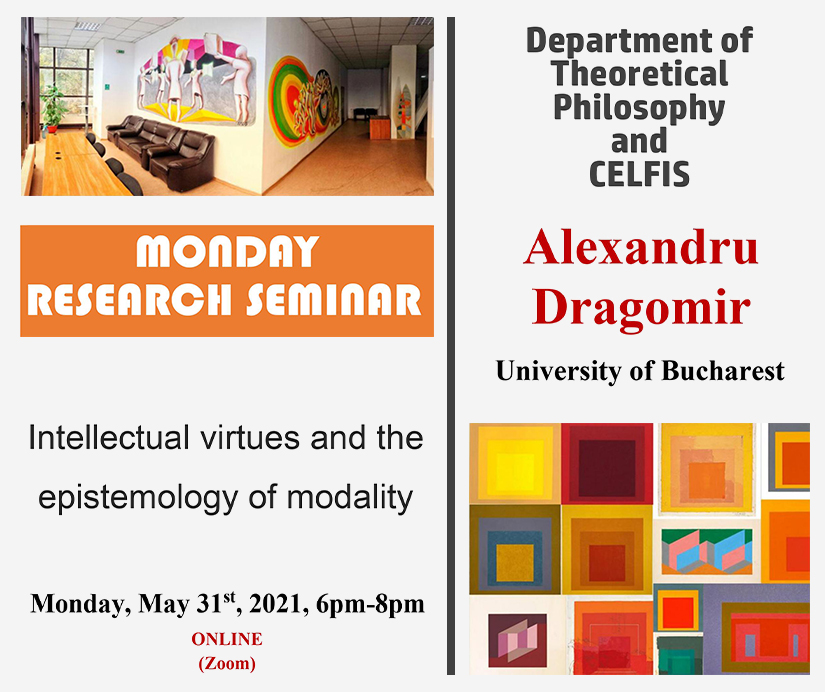 Conferința “Intellectual virtues and the epistemology of modality” în cadrul „Seminarului de cercetare de luni” al Departamentului de Filosofie Teoretică