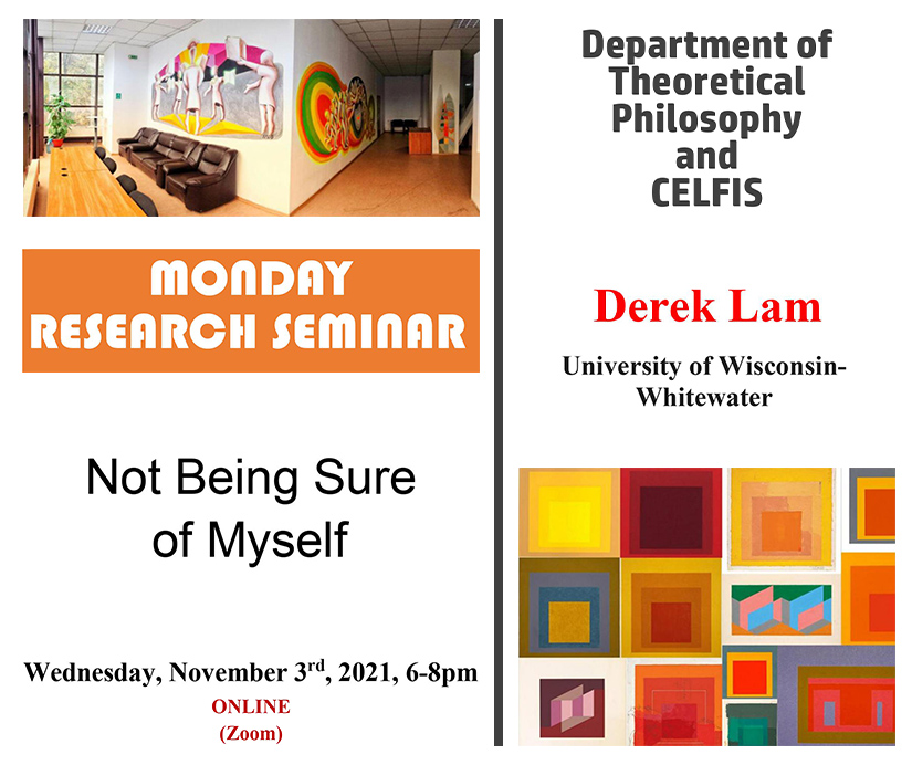 Miercuri, 3 noiembrie 2021, Departamentul de Filosofie Teoretică și Centrul de Cercetări în Logica, Filosofia și Istoria Științei din cadrul Universității din București va organiza online conferința “Not Being Sure of Myself, susținută de dr. Derek Lam (University of Wisconsin-Whitewater).