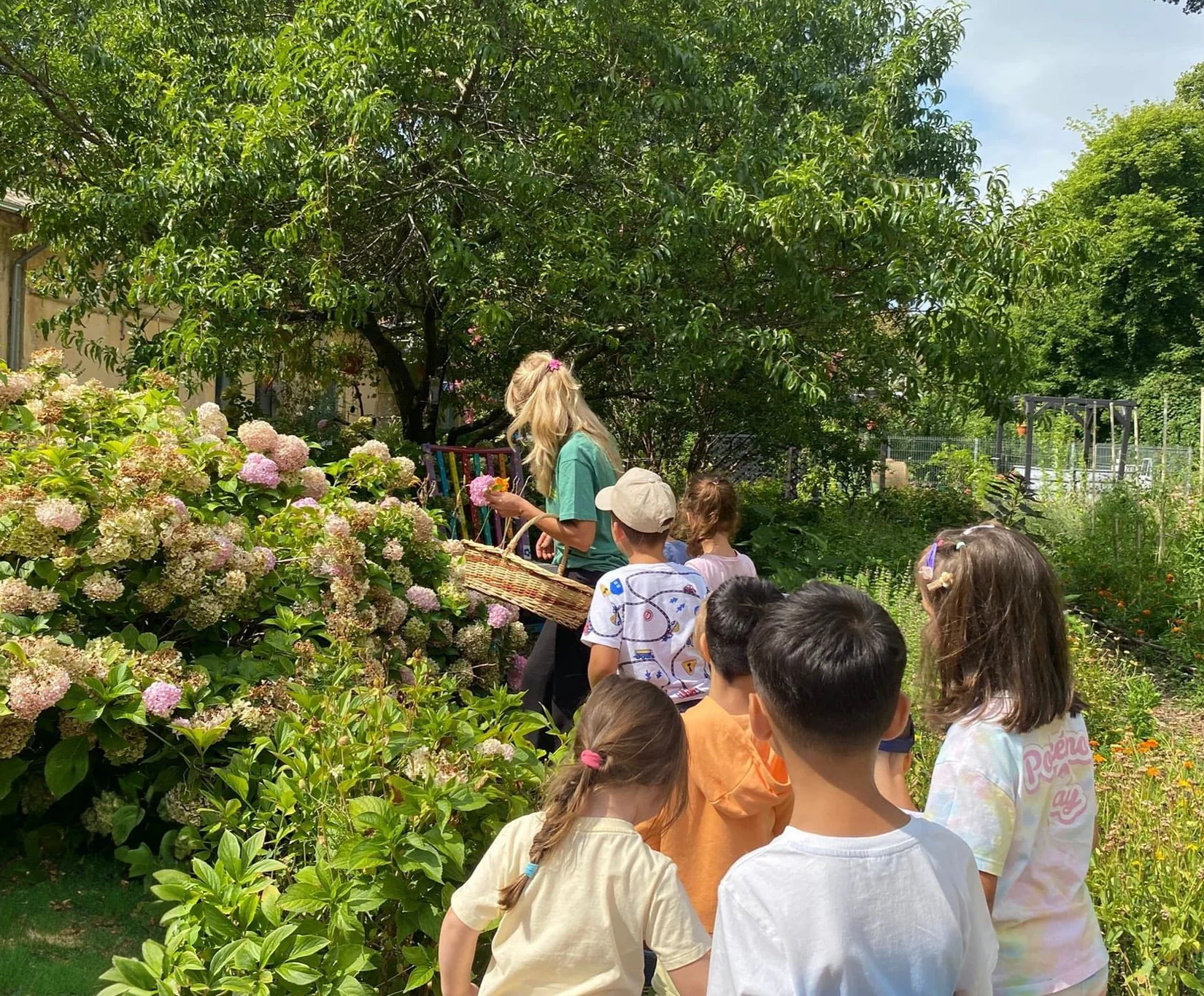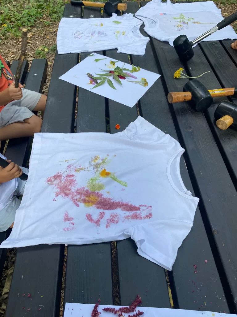 În cadrul atelierului, micii botaniști au cules initial flori de cosmos, coreopsis, salvie, coada-șoricelului, hortensii, rudbeckia, moțul curcanului, pe care le-au folosit apoi pentru a crea imprimeuri colorate pe tricouri. Procesul s-a realizat prin presarea plantelor cu ustensile adaptate, o tehnică simplă, care le-a permis copiilor să transfere culorile și formele plantelor direct pe materialul textil.