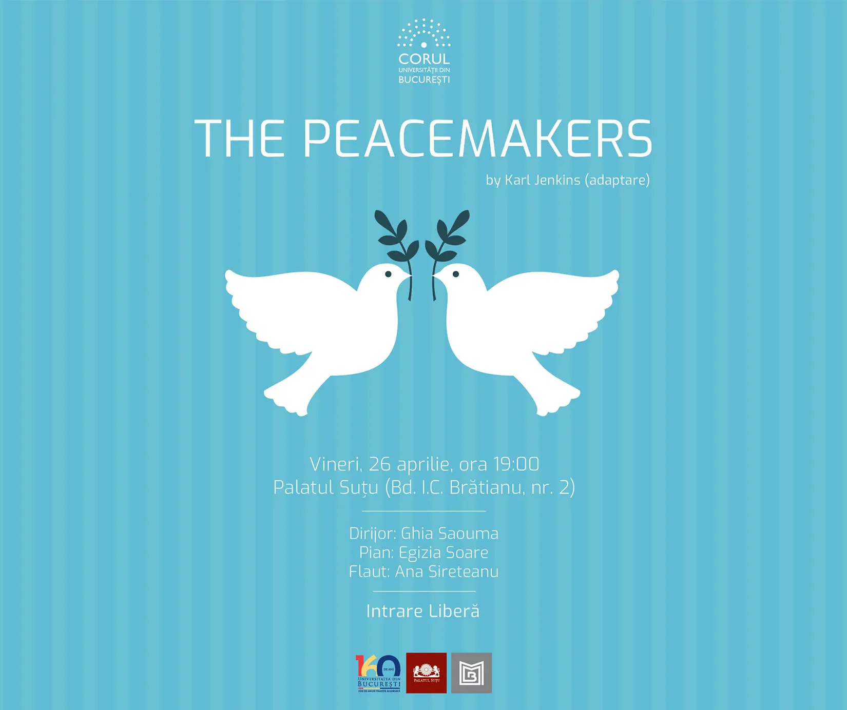 Cele mai frumoase și mai cunoscute piese care transmit un mesaj de pace, precum și cele similare din repertoriul internațional vor aduce atmosfera caldă și liniștitoare a primăverii, în spectacolul The Peacemakers, o variantă adaptată a compozițiilor muzicale de pe albumul cu același nume al compozitorului și muzicianului britanic Karl Jenkins.