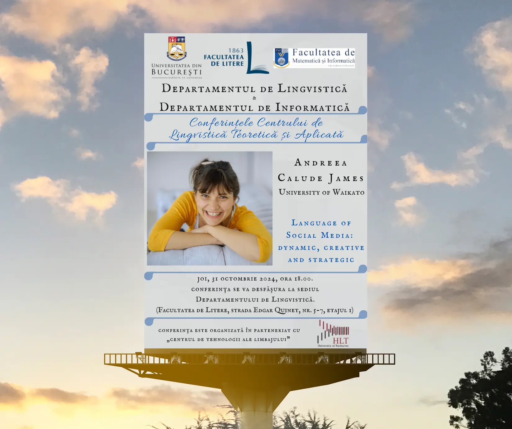 Joi, 31 octombrie 2024, Departamentul de Lingvistică al Facultății de Litere organizează în parteneriat cu Centrul de Tehnologii ale Limbajului al Facultății de Matematică și Informatică