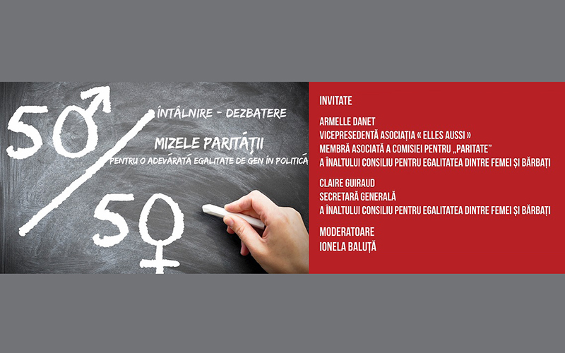 Marți, 27 noiembrie 2018, Facultatea de Științe Politice (FSPUB) a Universității din București, în parteneriat cu Centrul pentru Politicile Egalității de Șanse (CPES) al aceleiași facultăți, CEREFREA Villa Noël, Ambasada Franței în România și cu Institutul Francez din România, a organizat dezbaterea „Mizele parității. Pentru o adevărată egalitate de gen în politică”, cu Armelle Danet și Claire Guiraud. Evenimentul a avut loc în sala P5 a Facultății de Științe Politice (Calea Plevnei, nr.59), începând cu ora 18:00.