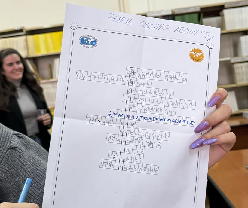 Marți, 30 ianuarie 2024, masteranzii programului Gestiunea spațiului turistic și servicii de ospitalitate (GSTSO) al Facultății de Geografie a Universității din București, au organizat un Escape Room dedicat atât studenților facultății, cât și profesorilor și absolvenților. Evenimentul a avut loc în Sala de lectură a Facultății de Geografie, care a găzduit în acea zi peste 30 de persoane.