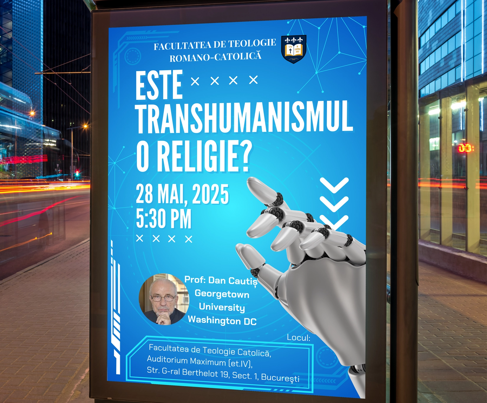 Facultatea de Teologie Romano-Catolică a Universității din București vă invită pe 28 mai 2025 la o prezentare specială dedicată uneia dintre cele mai controversate și provocatoare teme ale epocii contemporane: transumanismul. Evenimentul va explora posibilitatea ca această mișcare, care promovează transformarea naturii umane prin tehnologie, să funcționeze ca o religie seculară a secolului XXI.