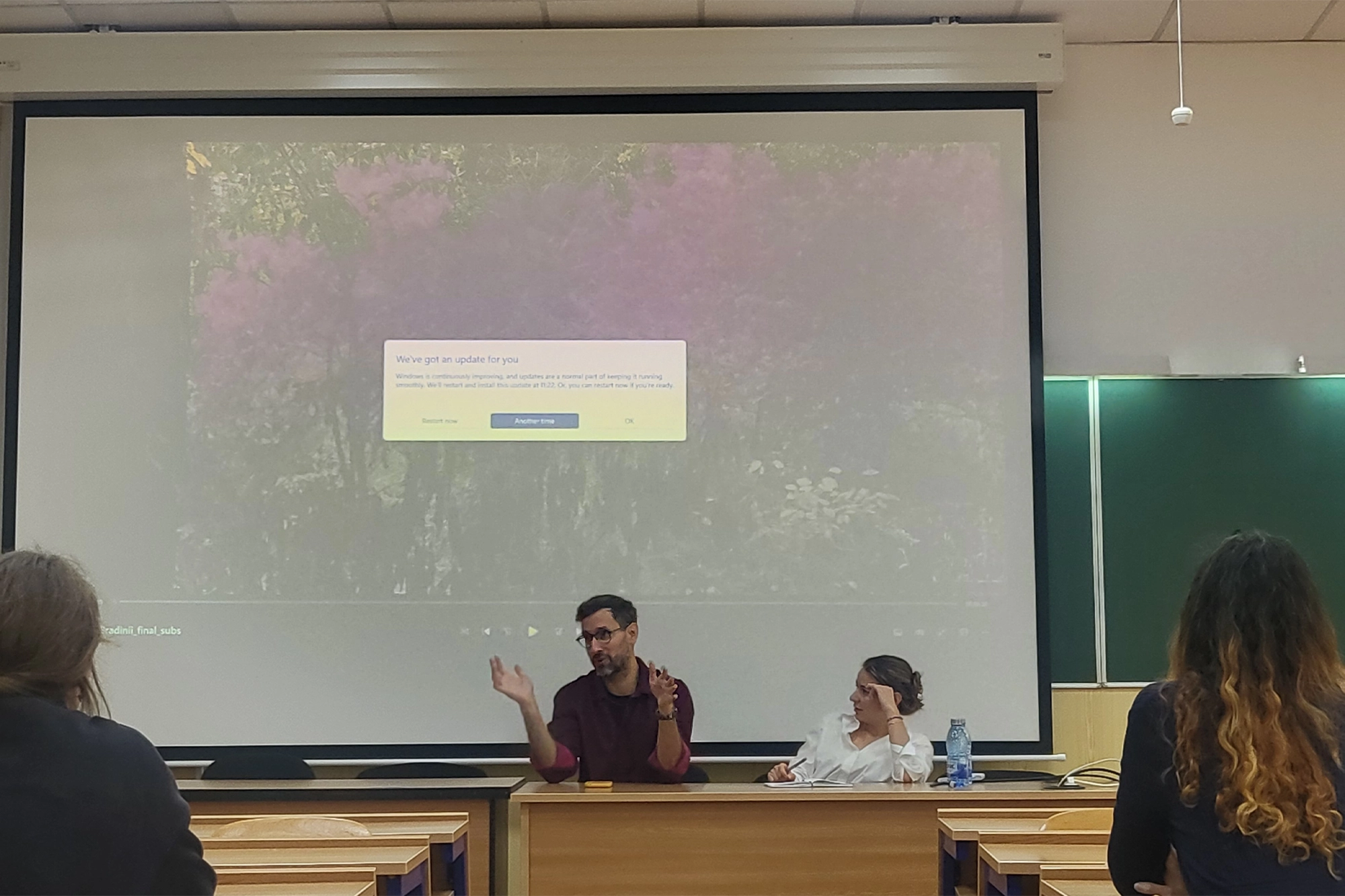Scurtmetrajele au fost prezentate și comentate de dr. Michał Wanke, sociolog și director al Departamentului de Studii Culturale de la Universitatea din Opole și Clara Kleininger-Wanik, realizatoare de film documentar și antropolog vizual, afiliată atât Universității din Opole, cât și Universității din Exeter, unde își desfășoară cercetarea doctorală în domeniul filmului, relațiilor multispecii și cunoașterii indigene. Discuția a fost moderată de lect. univ. dr. Oana Șerban, cadru didactic la Facultatea de Filosofie a Universității din București, care a facilitat schimbul de idei atât cu studenții Catedrei UNESCO, cât și cu cei ai programelor de licență și masterat de la Facultatea de Filosofie a UB.