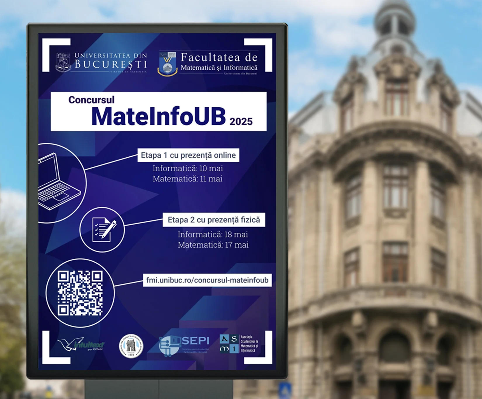 Facultatea de Matematică și Informatică a Universității din București organizează cea de-a V-a ediție a Concursului MateInfoUB, un eveniment recunoscut de Ministerul Educației și destinat elevilor de clasa a XII-a (promoția 2025) și absolvenților de liceu cu diplomă de bacalaureat.