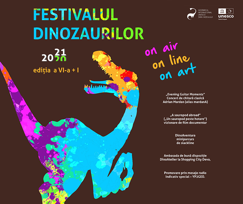„On air, on line & on art” este sloganul ce definește ediția din anul 2021 a Festivalului Dinozaurilor.