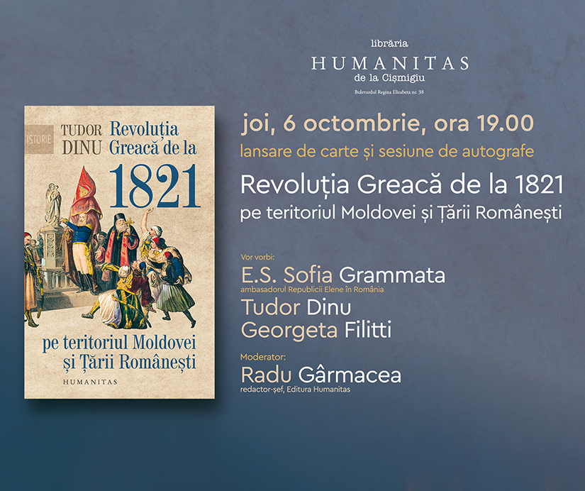 Joi, 6 octombrie 2022, va avea loc lansarea volumului Revoluția Greacă de la 1821 pe teritoriul Moldovei și Țării Românești, semnat de prof. univ. dr. Tudor Dinu, cadru didactic la Facultatea de Limbi și Literaturi Străine a Universității din București.
