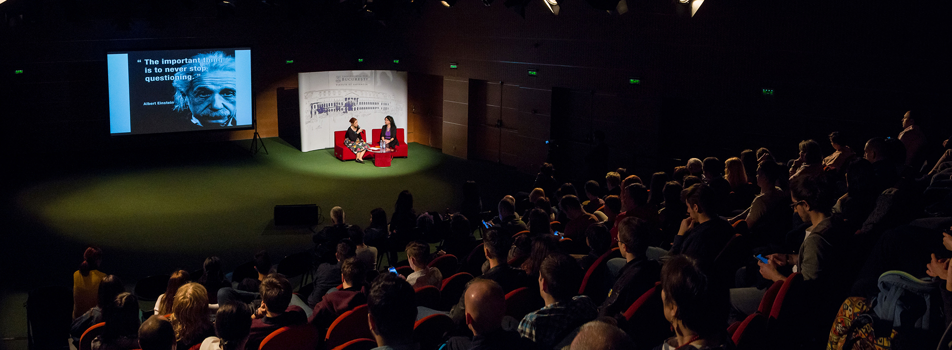 Cătălina Oana Curceanu, prim cercetător la „Laboratori Nazionali di Frascati dell’Istituto Nazionale di Fisica Nucleare”, Frascati, Roma, membru al „Foundational Questions Institute” (FQXi), SUA, și fizician cu o activitate academică și experiență recunoscute la nivel internațional, a susținut joi, 18 aprilie 2019, conferința „Acceleratoarele de particule: de la misterele materiei întunecate la hadronterapie” la Sala Media a Teatrului Național București. Evenimentul, organizat de Universitatea din București în cadrul seriei conferințelor „Știința pe înțelesul tuturor”, s-a adresat atât publicului larg, cât și pasionaților de științe.