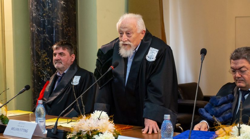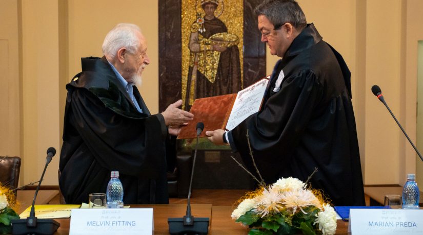 În continuarea ceremoniei, prof. univ. dr. Marian Preda, președintele Senatului Universității din București, i-a înmânat prof. Melvin Fitting diploma de Doctor Honoris Causa în semn de recunoaștere pentru activitatea remarcabilă în domeniul logicii matematice și a domeniilor conexe.