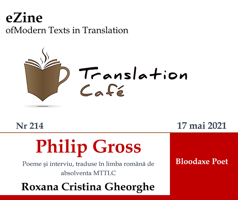 eZine of Modern Texts in Translation – Translation Café No 214, sub auspiciile Universității din Bucureşti, The British Council, Institutului Cultural Român și Uniunii Scriitorilor din România, anunță publicarea volumului „Poeme de, și interviu cu Philip Gross”, tradus în limba română de absolventa MTTLC Cristina Roxana Gheorghe.