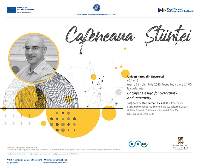 Marți, 21 noiembrie 2023, prof. univ. dr. Laurean Ilieș, cadru didactic la Saitama University și cercetător la RIKEN Center for Sustainable Resource Science Wako din Saitama, Japonia, a susținut o conferință în cadrul seriei de evenimente Cafeneaua Științei.