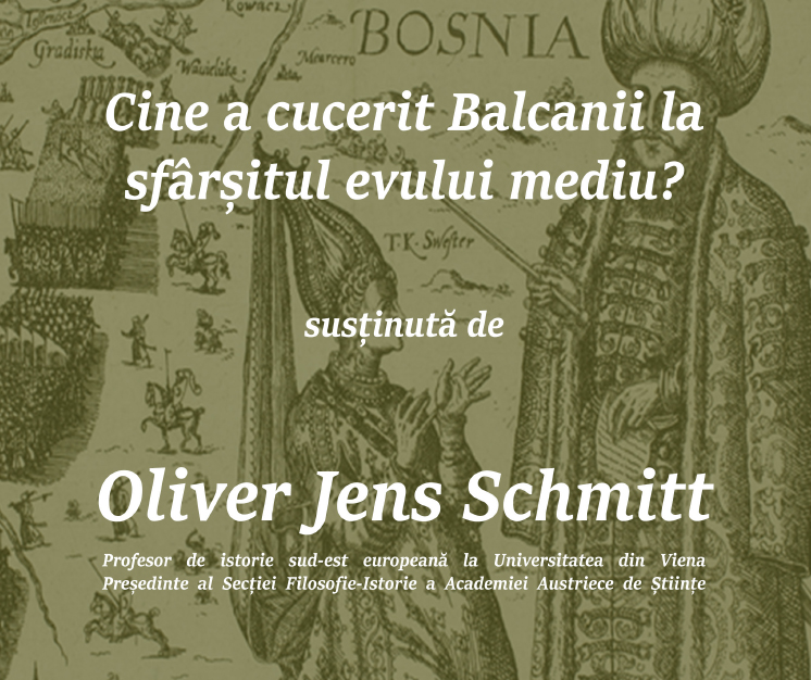 Conferința va fi susținută de Oliver Jens Schmitt, profesor de istorie sud-est europeană la Universitatea din Viena și președintele Secției de Filosofie-Istorie a Academiei Austriece de Științe. Domeniile sale de interes şi cercetare cuprind fascismul în Europa de Est, cu accent pe România, societăţile urbane din estul Mediteranei în secolul al XIX-lea, societatea şi politica în Imperiul Otoman târziu, evoluţiile socio-culturale în spaţiul balcanic albanez, istoria imperiului maritim al Veneţiei şi istoria Balcanilor în Evul Mediu târziu.