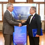 Subliniem, de asemenea, determinarea dumneavoastră de a ancora universitatea într-o dimensiune europeană, sustenabilă și durabilă. Prin numeroase proiecte, ați contribuit la conturarea Alianței CIVIS, o alianță universitară civică europeană care reunește o comunitate de peste 470.000 de studenți și care include alte două universități francofone (Universitatea Liberă din Bruxelles și Universitatea „Aix-Marseille”). Ați depus eforturi considerabile pentru a sprijini crearea de programe de studii în limbi străine europene, dovadă fiind existența programelor de studii în limba spaniolă, italiană, germană și, nu în ultimul rând franceză, programe pe care le putem vedea în curricula Universității din București.