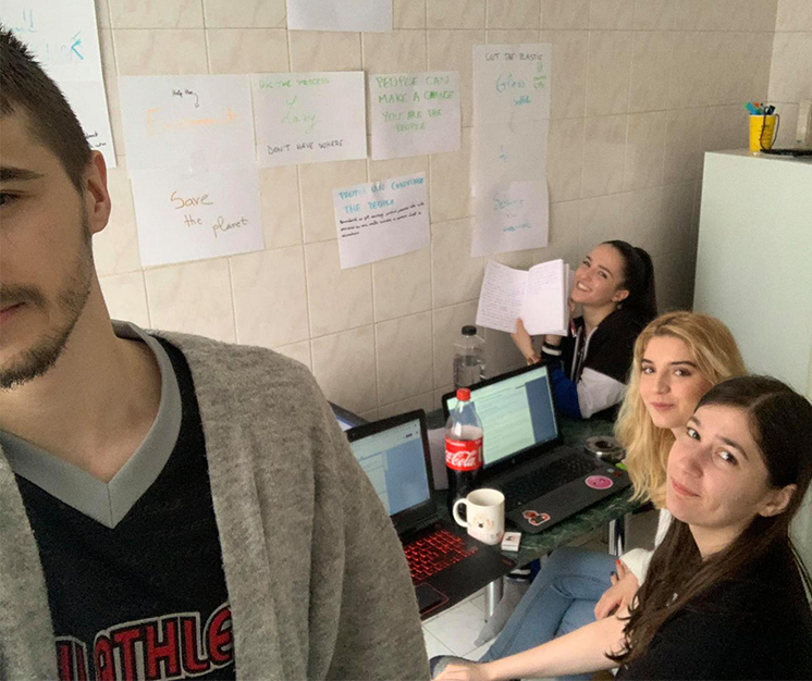 Ana Sandu, Flavius Țăran, Alexandra Chițu și Silvia Voicu sunt numele celor patru prieteni, așa cum se prezintă chiar ei, care au rezolvat brieful pus la dispoziție de edcom.