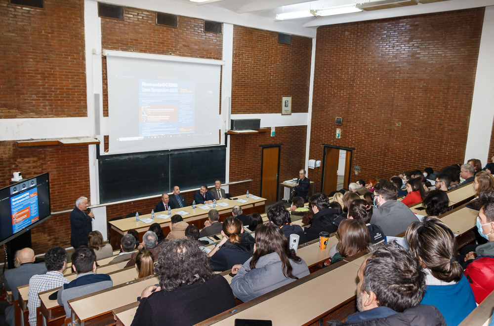 În ziua de 11 ianuarie 2023, Facultatea de Fizică a Universității din București și Institutul de Fizică Atomică au organizat Romania@CERN – Open Symposium 2023. Evenimentul a fost prilejuit de întrunirea Comitetului Științific Internațional Consultativ (International Scientific Advisory Board – ISAB) cu ocazia aniversării a 10 ani de la înființarea ISAB.