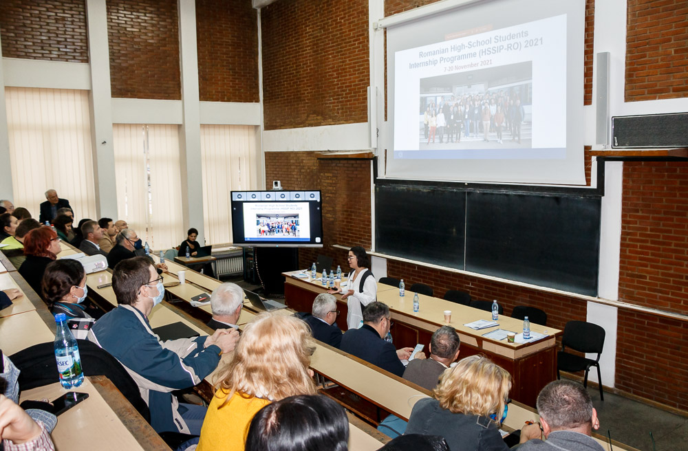 În deschidere au fost susținute scurte alocuțiuni de către invitații speciali – conf. univ. dr. Sorin Costreie (Consilier de stat al Primul Ministru pentru educație și cercetare și Prorector al Universității din București), prof. univ. dr. Tudor Prisecaru (Secretar de stat la Ministerul Cercetării, Inovării și Digitalizării), dr. Nicolae Mărginean (director general al Institutului Național de Cercetare-Dezvoltare pentru Fizică și Inginerie Nucleară – „Horia Hulubei” – IFIN-HH), prof. univ. dr. Virgil Băran (director al Consiliului pentru studii universitare de doctorat al Universității din București), conf. univ. dr. Mădălin Bunoiu (președintele Agenției Române de Asigurare a Calității în Învățământul Superior și prorector al Universității de Vest din Timișoara) și dr. Florin Buzatu (delegat științific al României în consiliul CERN și Director General al Institutului de Fizică Atomică).