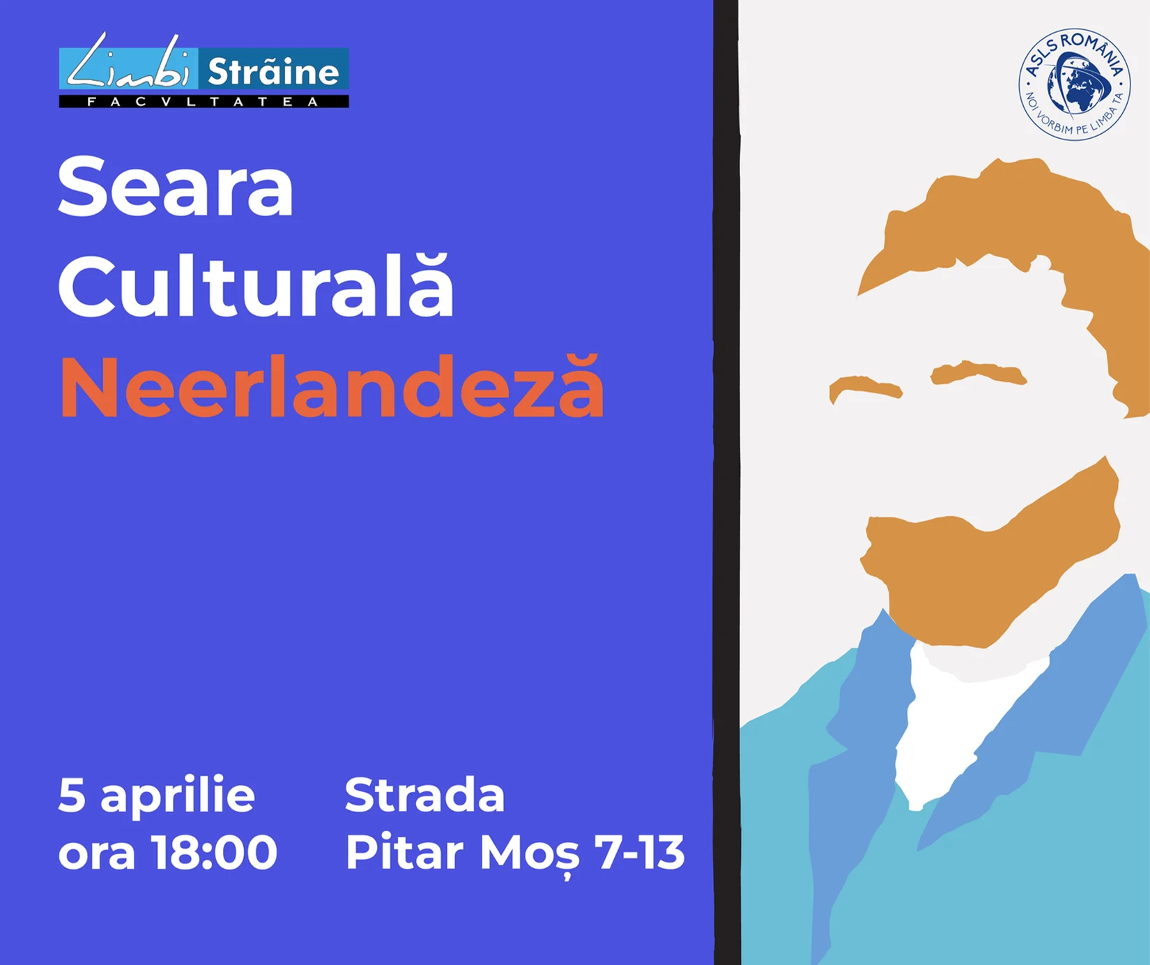 Vineri, 5 aprilie 2024, Asociația Studenților din Facultatea de Limbi și Literaturi Străine a UB organizează „Seara Culturală Neerlandeză”, eveniment ce are ca scop explorarea culturii neerlandeze prin diferite activități interactive și distractive.