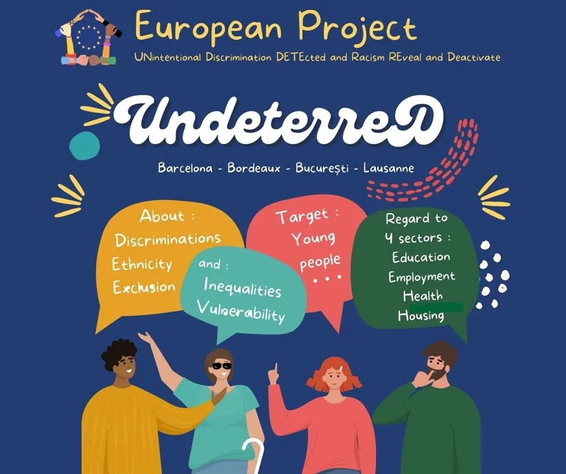 Universitatea din București, în calitate de parteneră în cadrul proiectului european Unintentional Discrimination Detected and Racism Reveal and Deactivate (UNDETERRED), invită studenții de la toate ciclurile de studii să completeze un chestionar cu privire la identificarea inegalităților de tratament care afectează tinerii europeni (cu vârste între 18 și 35 de ani) în sectoarele formării, locurilor de muncă, sănătății și locuirii.