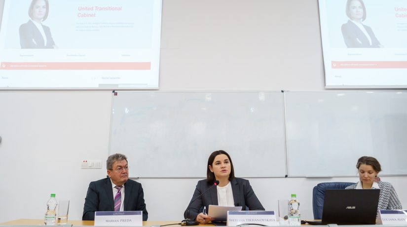 Totodată, Tihanovskaia a făcut referire la trecutul României, punctând faptul că românii pot înțelege situația din Belarus din cauza a ceea ce au trăit în istoria lor recentă. „România a trecut prin vremuri foarte negre în urmă cu mai bine de 30 de ani. Așadar, știți foarte bine ce înseamnă ca țara ta să fie luată ostatică de un dictator!”, a afirmat conferențiara, după care a mulțumit României pentru facilitarea acestei vizite oficiale și pentru sprijinul acordat forțelor democratice din Belarus.