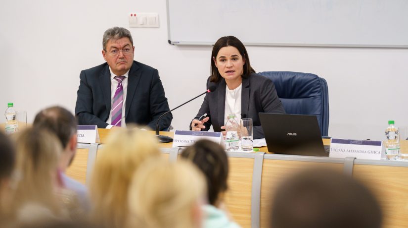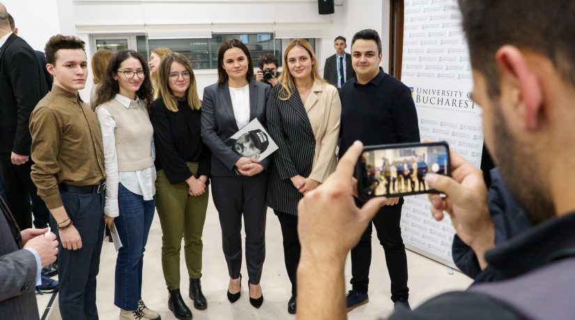 Luni, 28 noiembrie 2022, Universitatea din București a devenit spațiul în care discursul pentru democrație, libertate și drepturile omului s-a făcut auzit prin intermediul uneia dintre cele mai puternice voci aflate în exil, Svetlana Tihanovskaia, lidera opoziției bieloruse. Evenimentul, intitulat On revolution and democratic change: A debate with Svetlana Tikhanovskaya, a fost precedat de o conferință de presă și a prilejuit un dialog dinamic cu studenții Universității din București.