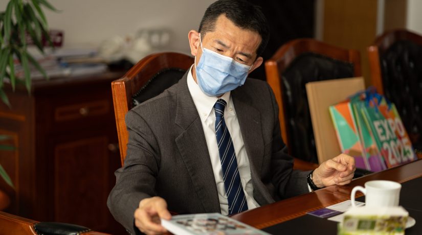 În cadrul întâlnirii oficiale de la București, E.S. domnul Ambasador Ueda a fost întâmpinat de Rectorul Universității din București, prof. univ. dr. Marian Preda, și de reprezentanți ai conducerii UB: prof. univ. dr. Bogdan Ștefănescu, prorector al UB pentru Internaționalizare și Publicații științifice, Alina Cristovici, director al Departamentului de Relații Internaționale al UB, și Anca Focșeneanu, coordonatoarea Secției de Limbă și Literatură Japoneză a Facultății de Limbi și Literaturi Străine și director al Centrului de Studii Japoneze al UB.