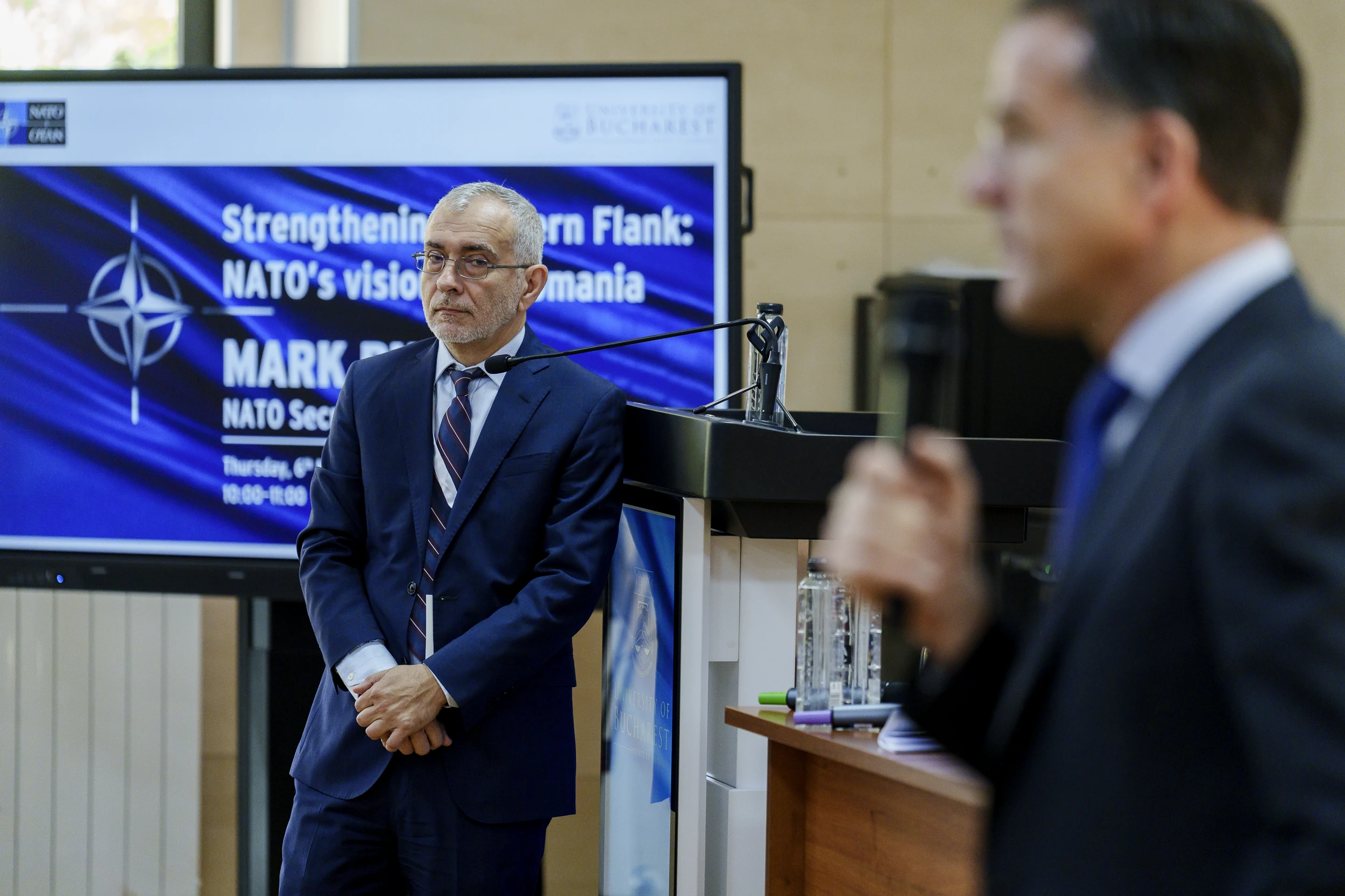 Universitatea din București a primit joi, 6 noiembrie 2025, vizita secretarului general al NATO, Mark Rutte, și a organizat, cu această ocazie, dezbaterea cu studenții „Strengthening Eastern Flank: NATO’s vision for Romania”.