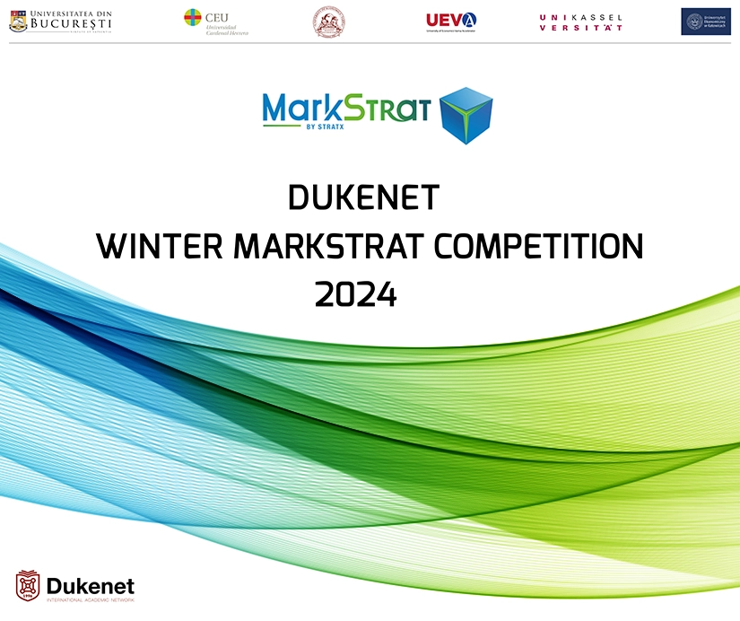 În perioada 29 ianuarie – 2 februarie 2024, Universitatea din București organizează, prin Facultatea de Administrație și Afaceri și Facultatea de Limbi și Literaturi Străine, Competiția Internațională Markstrat, având ca participanţi 64 de profesori, mentori şi studenţi din Polonia, Spania, Italia, Germania, Bulgaria şi România.