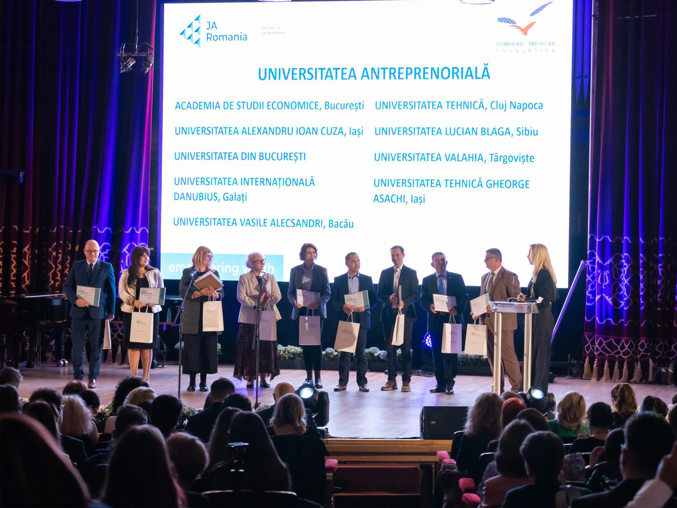 The gala marked the end of the 2024–2025 academic year for Junior Achievement programs and gathered both participants and supporters of educational initiatives implemented nationwide, including those involving the University of Bucharest. Awards were presented to students, teachers, institutions, and private-sector partners for excellence, involvement, and impact in promoting entrepreneurial learning.