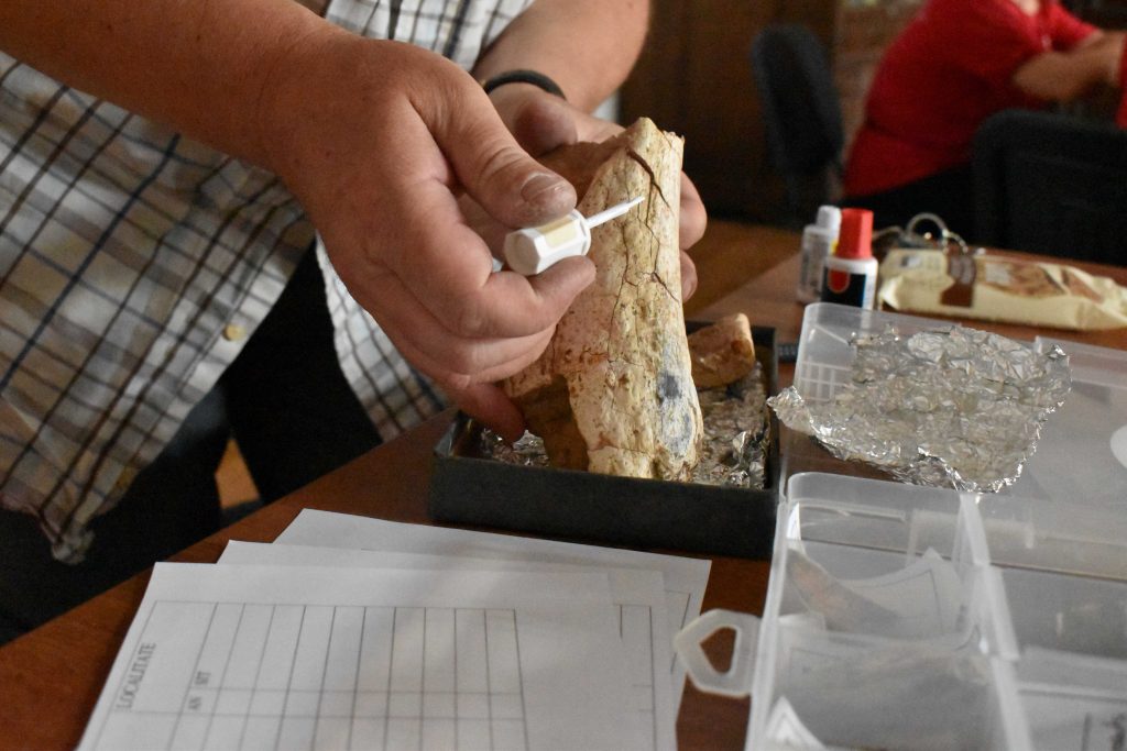 During the four days, more than 500 samples passed through the hands of the volunteers, most fossils of the dinosaurs Zalmoxes robustus, Telmatosaurus transsylvanicus, Magyarosaurus dacus and turtle Kallokibotion bajazidi. Each piece in the collection was checked by inventory number and compared to the collection list. Each fossil was then given a new label and photographed.