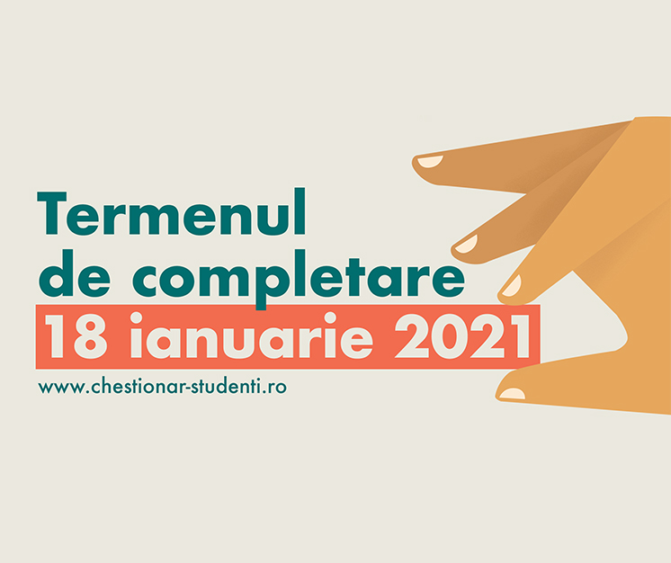 Din dorința de a ajunge la cât mai mulți studenți, UEFISCDI și Ministerul Educației și Cercetării au prelungit perioada de completare a Chestionarului Național Studențesc până luni, 18 ianuarie 2021.