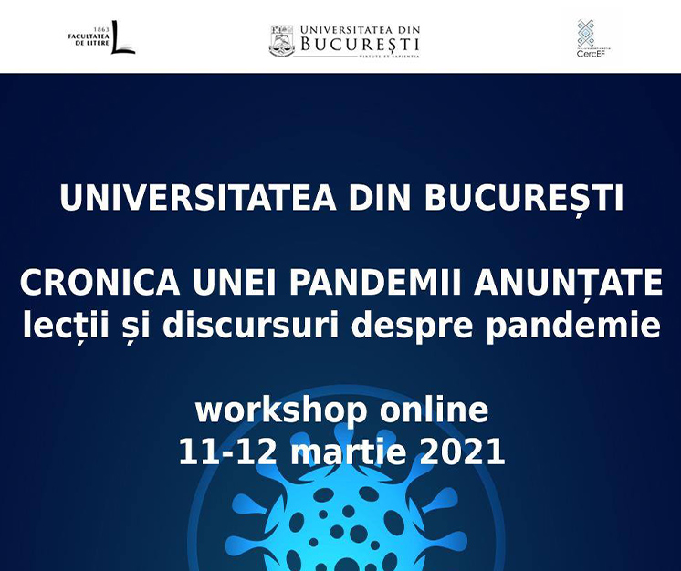 În perioada 11-12 martie 2021, Facultatea de Litere și Centrul de Cercetări de Etnologie și Folclor din cadrul Universității din București organizează online, pe platforma Google Meet, workshop-ul „Cronica unei pandemii anunțate. Lecții și discursuri despre pandemie”.