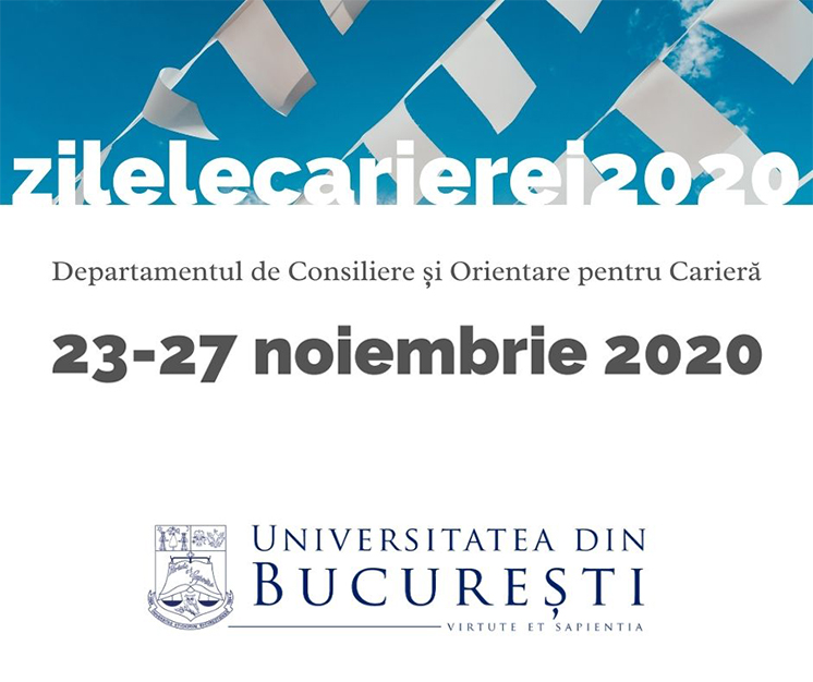 În perioada 23-27 noiembrie 2020, Departamentul de Consiliere și Orientare pentru Carieră al Universității din București organizează, sub deviza „Zilele Carierei 2020”, o serie de webinarii și workshop-uri online pentru studenții UB. Evenimentele vor avea loc zilnic, în intervalul orar 10:00-18:00.